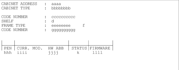 This AMO is used to output the cabinet configuration of a system - cabinet data, module frame data, and data of the SWU-CC modules - in the form of a table or position-oriented commands for compiling a diagram by means of a PC program.