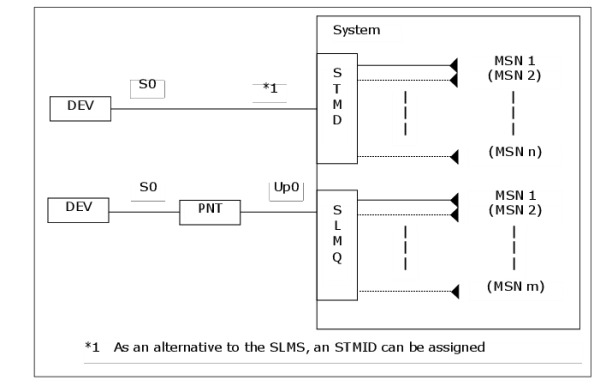 The Point-to-Point connections for functional S0/S2/SIP terminals described before may also be extended by so called MSN station numbers (Multiple Subscriber Numbers).
