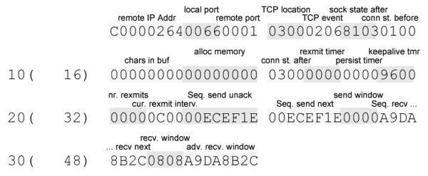 the TCP-Flags (vgl. Tabelle 43 auf Seite 2475) of received TCP packet will be saved into the Intel bits 0 - 5 of byte 0 in TCP event,