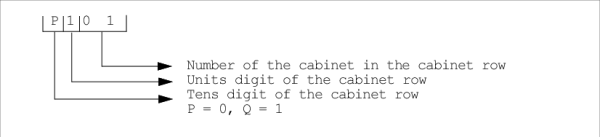 Cabinet row, cabinet number (e.g. P101)