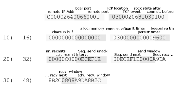 the TCP-Flags (see Table 37) of received TCP packet will be saved into the Intel bits 0 - 5 of byte 0 in TCP event,